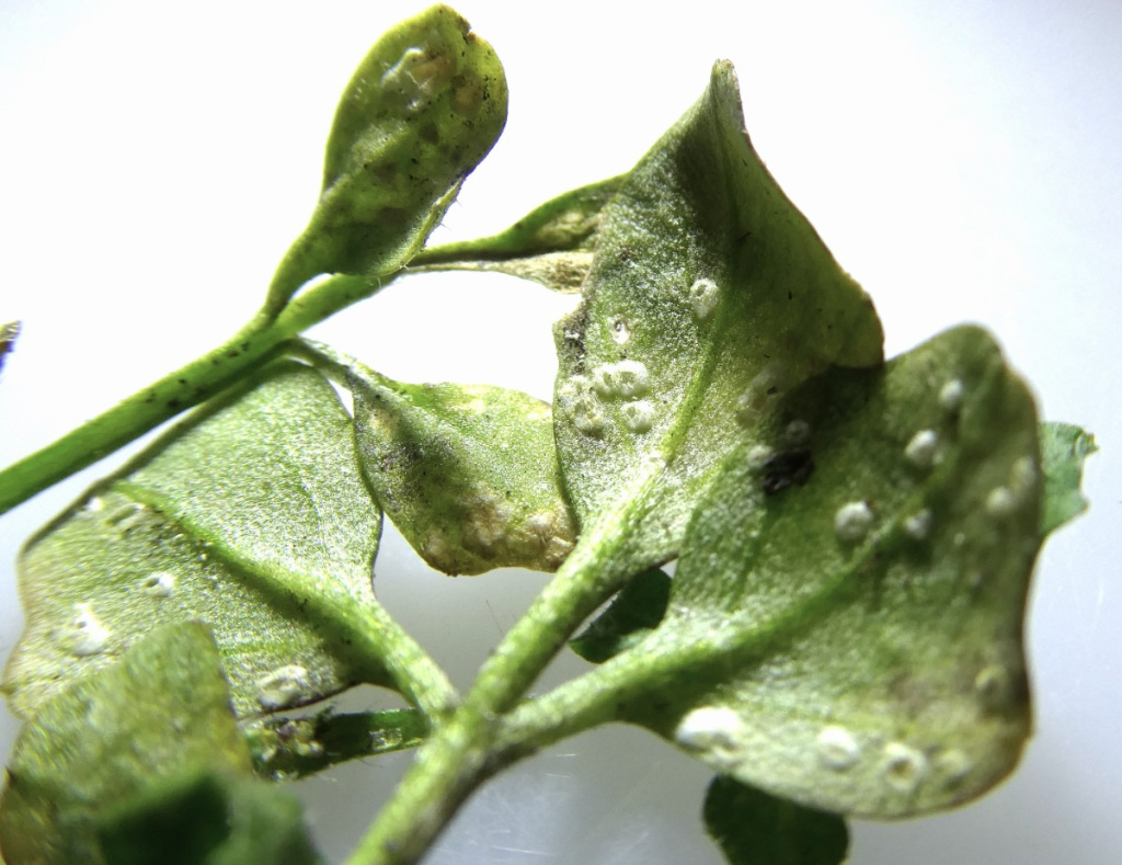 A white blister rust affecting Hairy Bittercress Cardamine hirsuta.