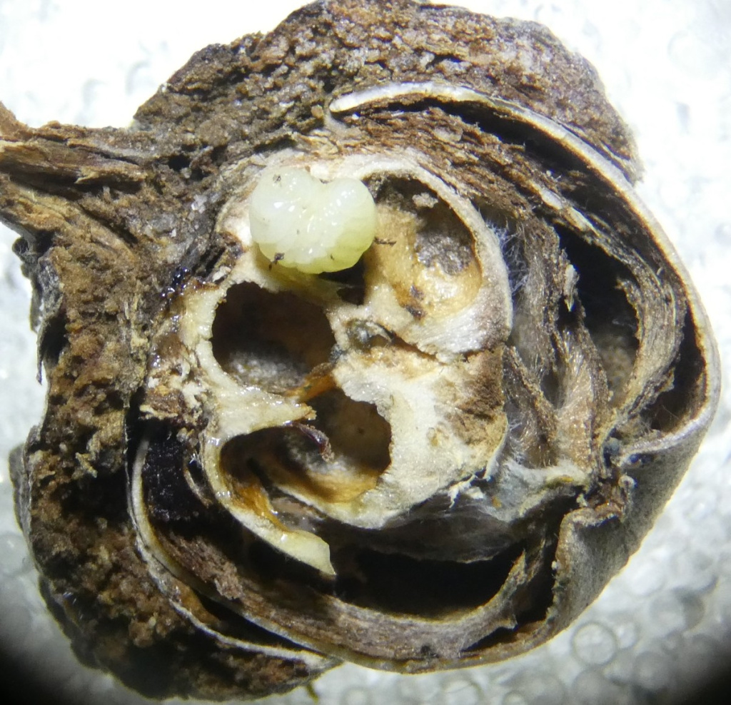 Unless identified by a recognised expert, a photo is required of the sectioned acorn, showing larvae inside. Note the host species