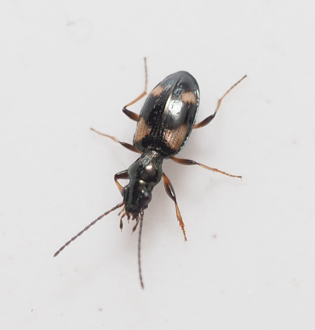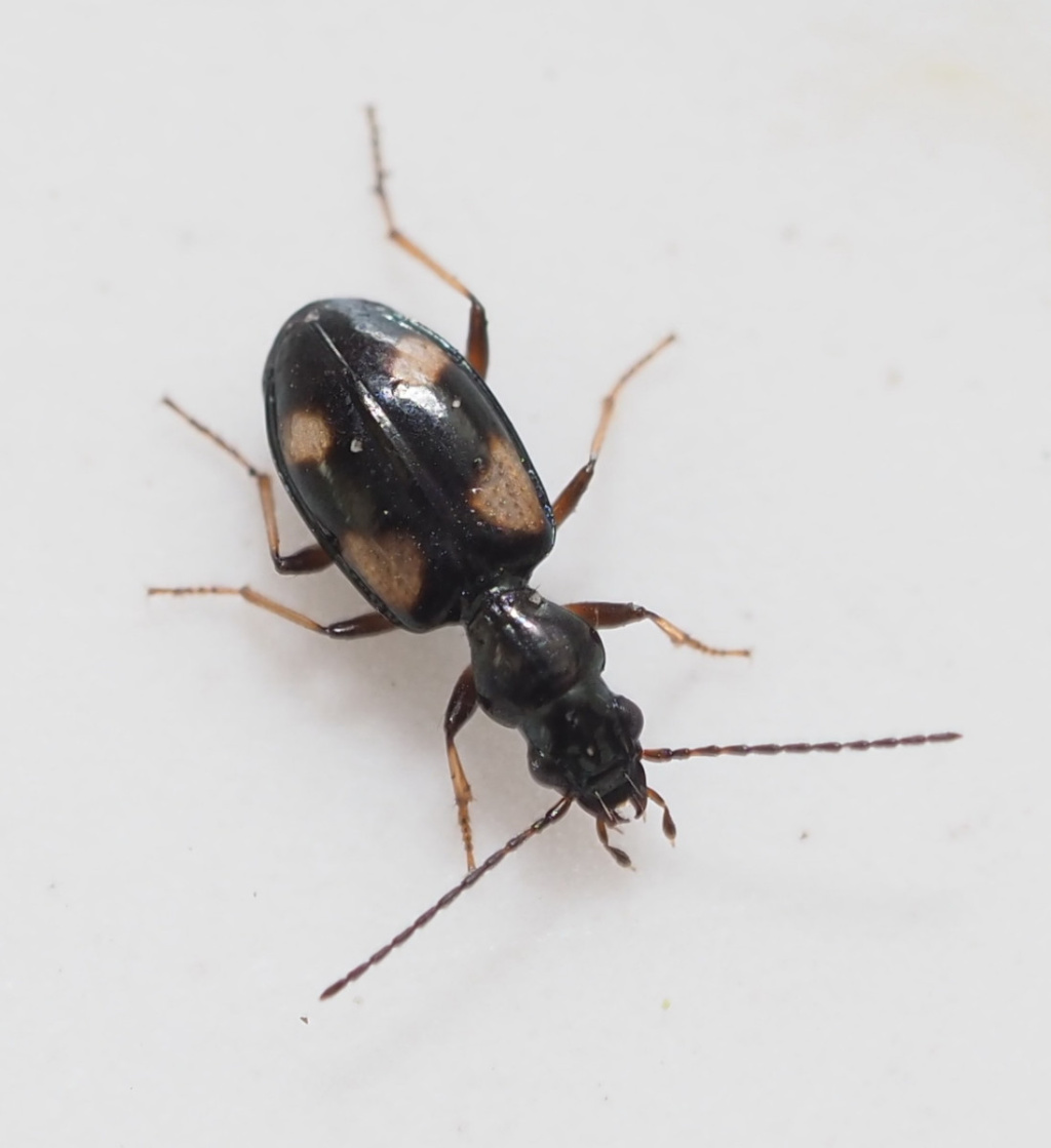 4.1-5.2mm. Glossy black elytra with 4 pale (yellowish) spots, the larger basal spots broadly triangular. The elytral striae are only in the basal half, fading out afterwards.