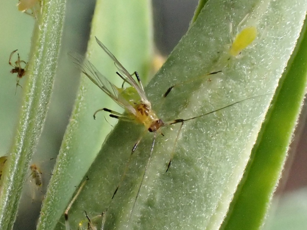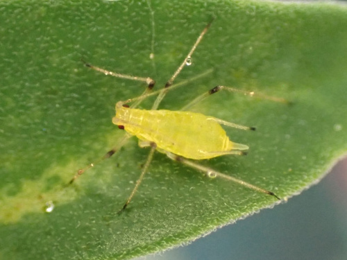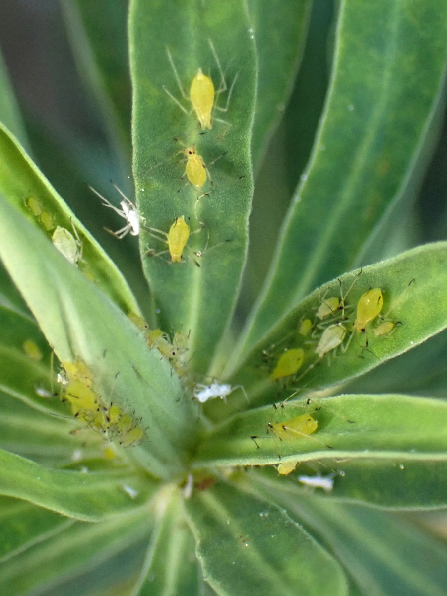 Macrosiphum euphorbiellum lives year-round among the leaves of spurge, including the garden varieties Euphorbia amygdaloides and Euphorbia characias.