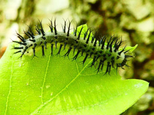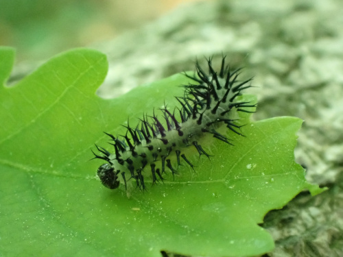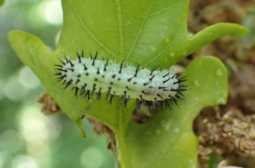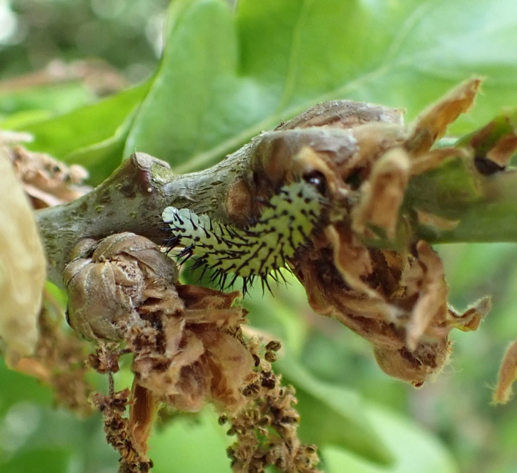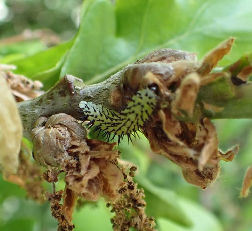 6-7mm. Generally all black but the male has pale, usually orange, sides to the abdomen. The legs have black femora, white tibiae (with brown at the apex) and brown tarsi. The larvae feed on English and Sessile Oak and have long branched bristles.These bristles are the longest of the three Periclista species and have branches shorter than the stems.