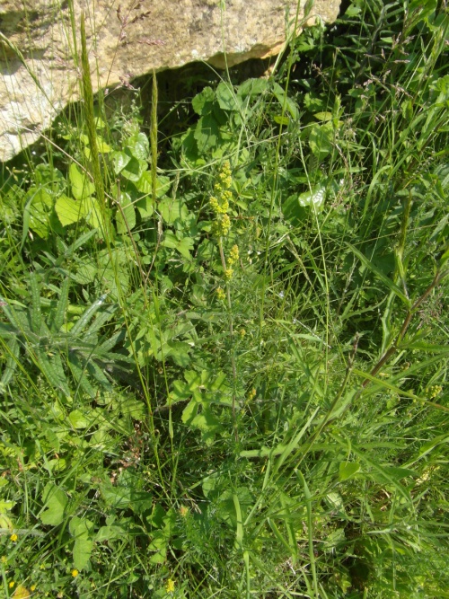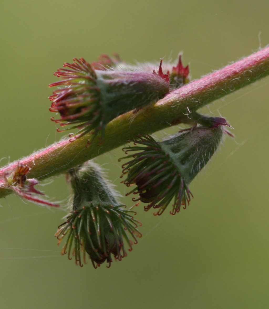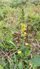 Height 30-60 cm. A hairy plant with golden yellow flowers of 5 to 8 mm in slender spikes. Fruit grooved with erect hooks at the top.