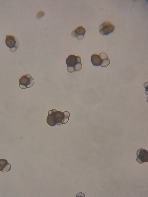 Anemone Smut (Urocystis anemones) affects various members of the anemone family especially Wood Anemone (Anemone nemorosa), causing blister like swellings beneath the epidermis which rupture to produce dark brown spore-balls. The spore balls consist of 1 or more brown spores, surrounded by some hyaline sterile cells.