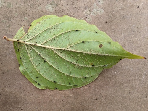 It is parthenogenetic on the roots of grasses for much of the year and then produces sexual morphs which feed, mate and produce winter eggs on Dogwood.