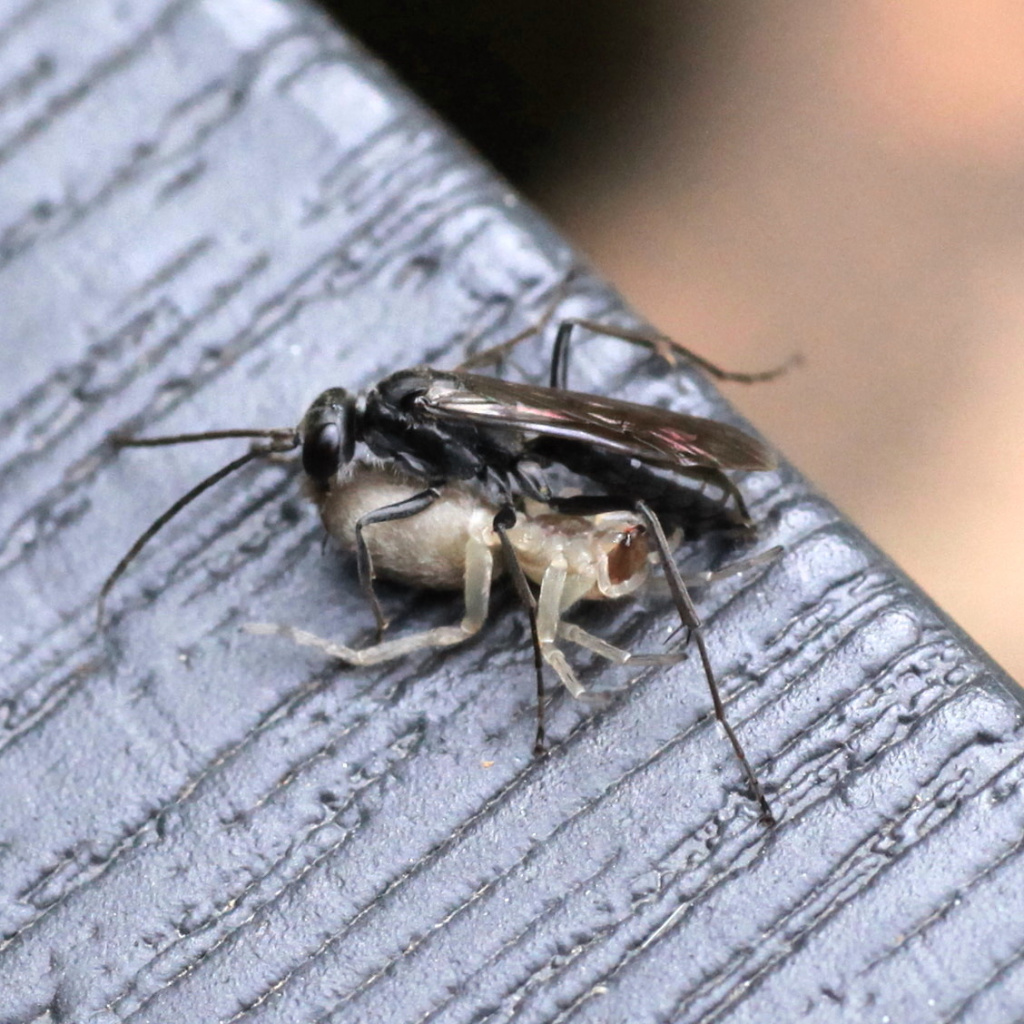 The wasp tends to inhabit woodland, especially that with streams and marshy areas which provide wet mud and clay for nesting materials.
