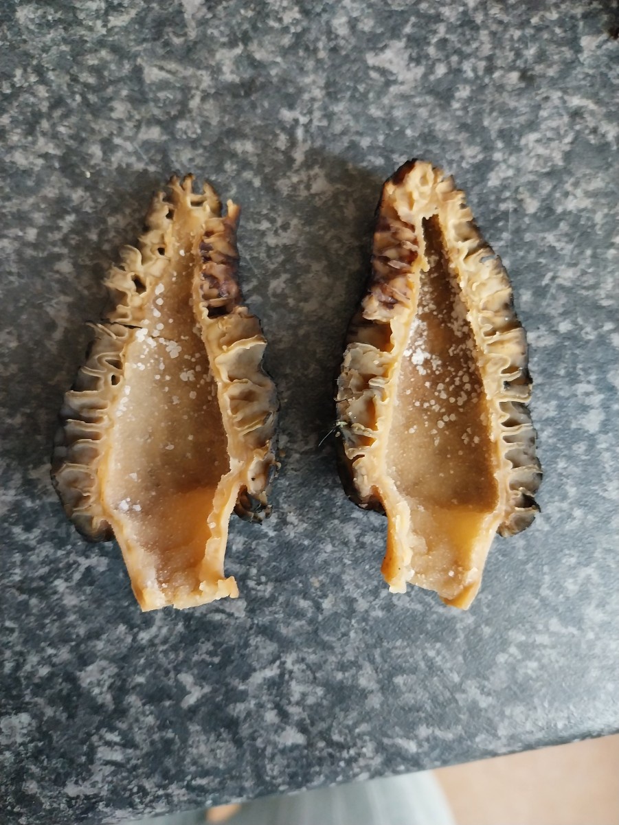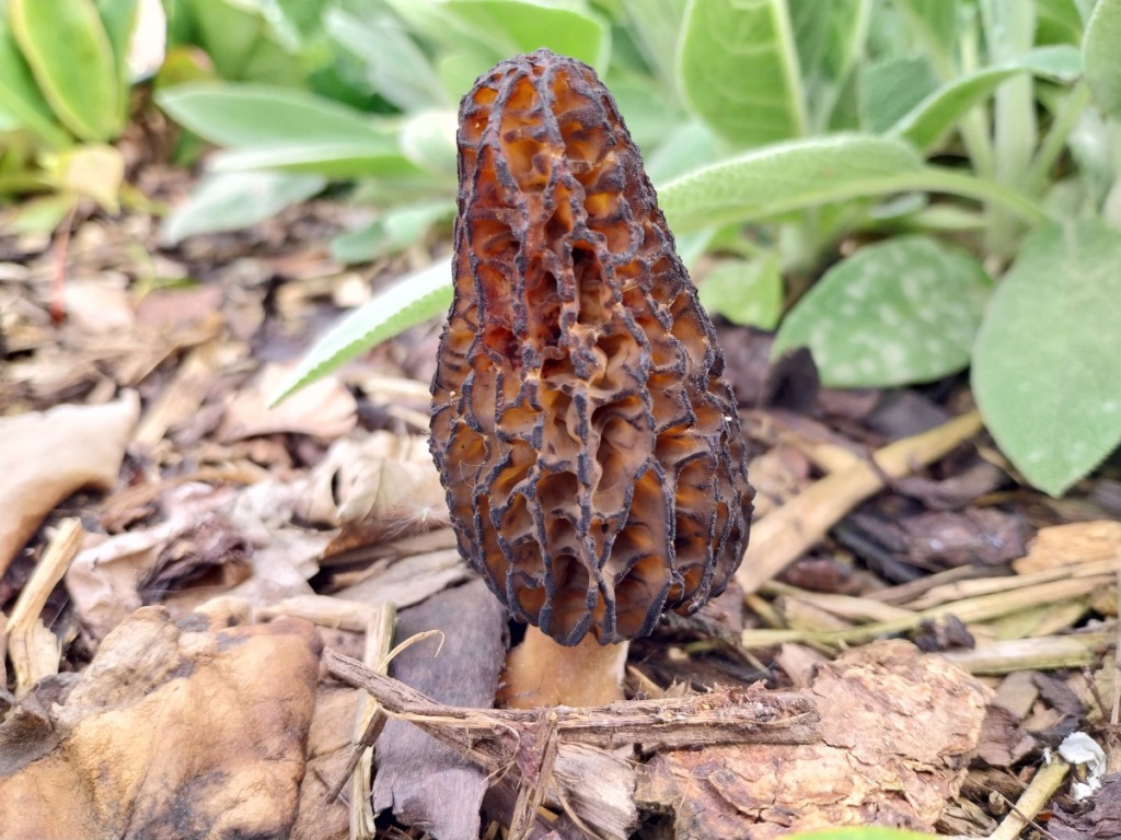 The Black Morel has fruitbodies with a single central hollow in the head and stem. The head is conical, with longitudinal ridges that are more or less parallel, divided by short horizontal ridges. The head colour varies from grey to nearly black. The stem is white and smooth. This may be part of a complex of species.