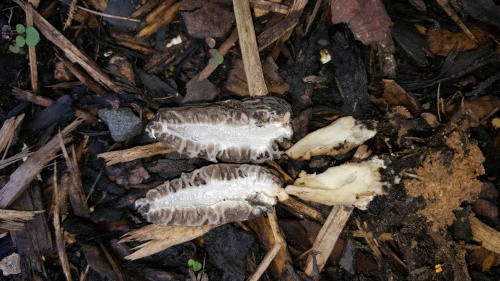 Under trees and in woodlands. Also on woodchip in parks, gardens, etc.