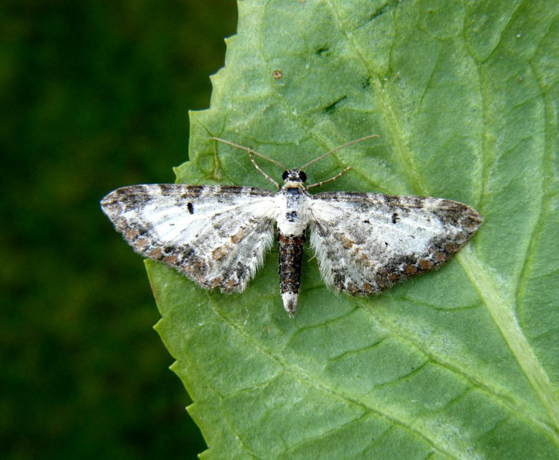 Wingspan 20-23 mm. A fairly easy species to identify, being one of only a few Pugs which are mainly black-and-white.
