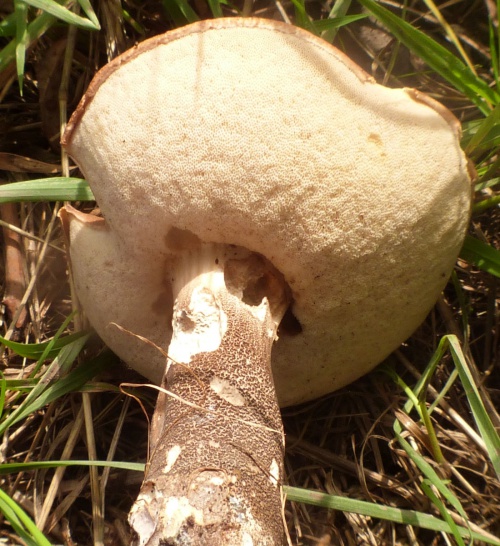 Photograph a fresh specimen from top down and in side view, and underneath to show pores and full length of stipe. Note habitat and substrate. Check for staining on cap, pores and stem base when cut and then bruised.