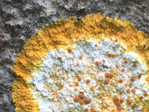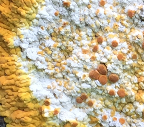 In the east of VC55 Caloplaca (=Variospora) aurantia is found on limestone in churchyards is found and this is easily confused with C. flavescens.