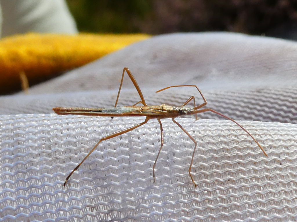 A very long and narrow straw-coloured bug, 14-16mm long, found in grasslands. It is usually brachypterous.