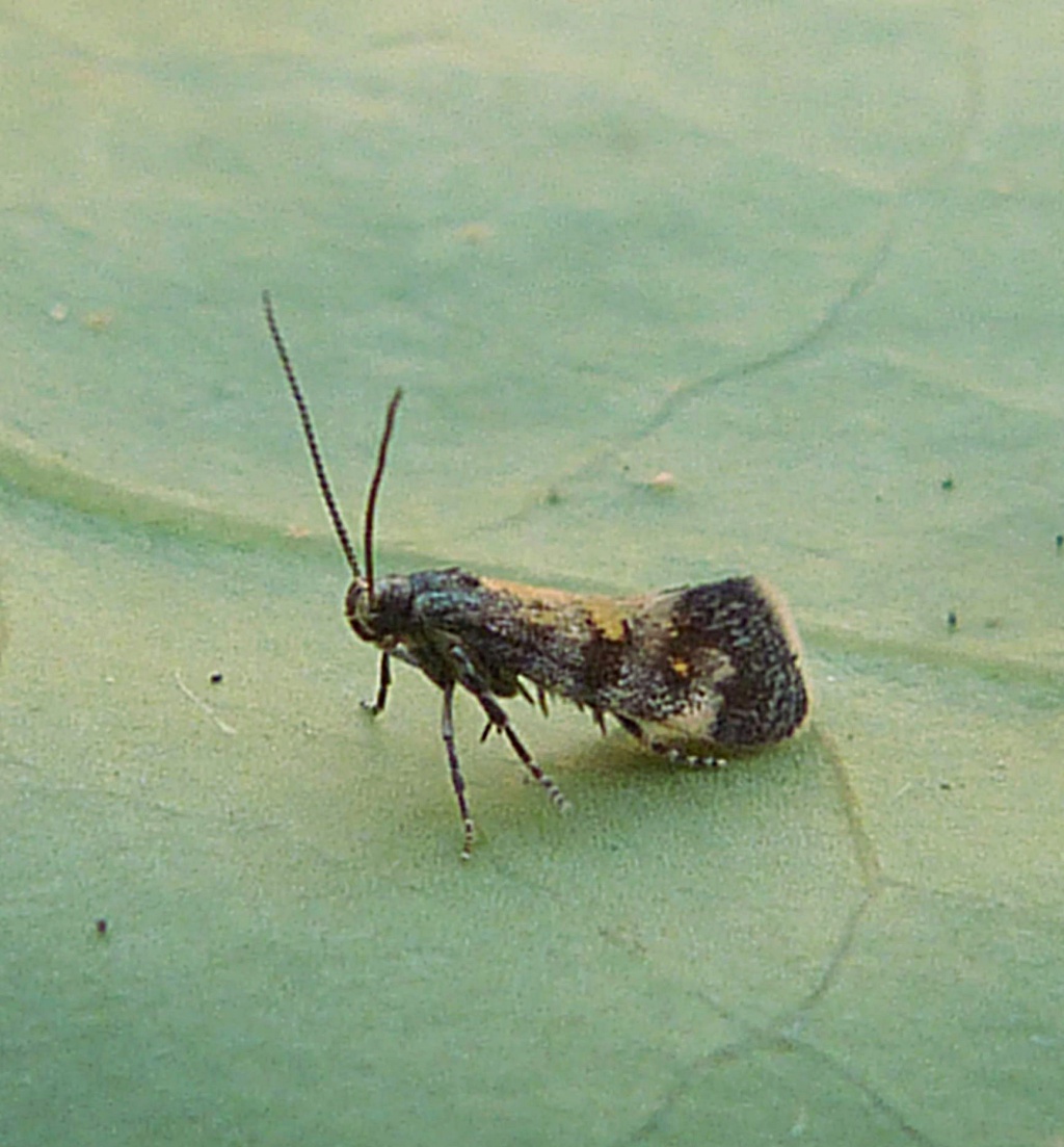Wingspan 8 to 10 mm. The larva mines the leaves of Goosefoot (Chenopodium) and Orache (Atriplex) and other plants in this family, creating a clear blotch mine with black frass in large lumps