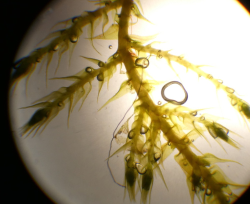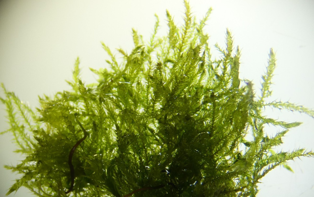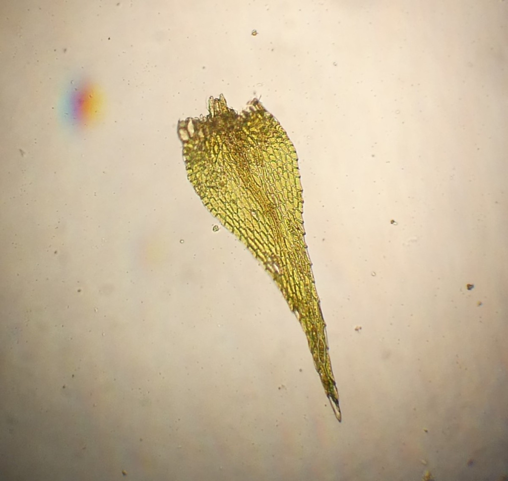 The mid- to dark green, irregularly branched, 1 to 2 cm long shoots may form extensive, intricate patches. Stem leaves are very small (normally only about 0.5 mm long), erect or erect-spreading, narrowly egg-shaped, with a tapering tip, and often rather markedly narrowed at about mid-leaf. The nerve is single, but difficult to see with a hand lens, and does not extend beyond mid-leaf. Branch leaves are very similar, but even smaller. Capsules are common, to about 2 mm long, curved and cylindrical, borne on a long seta, and have a conical lid.
