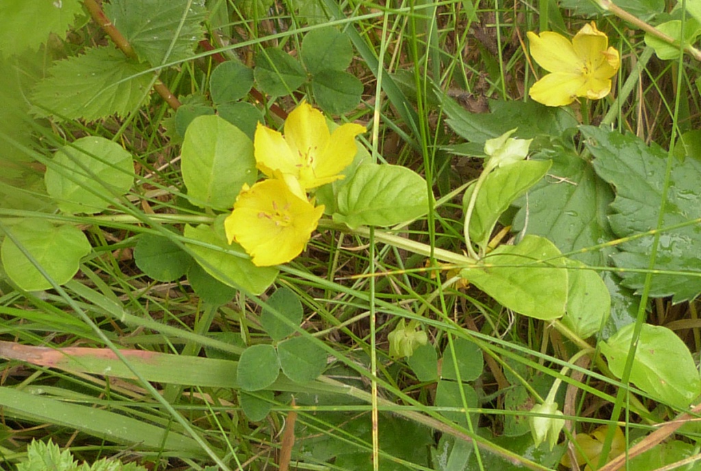 Low evergreen, hairless, creeping plant. Leaves opposite, oval to rounded, short stalked, gland dotted. Flowers yellow 12 to 18 mm solitary with wide sepal lobes, the petals dotted with black glands.
