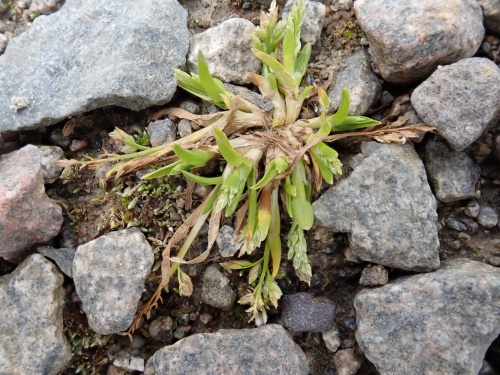 In the field Poa infirma is a little more slender than Poa annua, but the real character that picks out plants to look at in more detail is its light green colour. Anthers provide the best diagnostic characters.