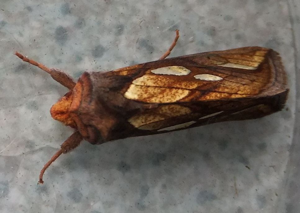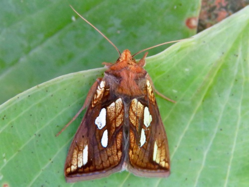 Wingspan 34-46 mm. A distinctive and colourful species.