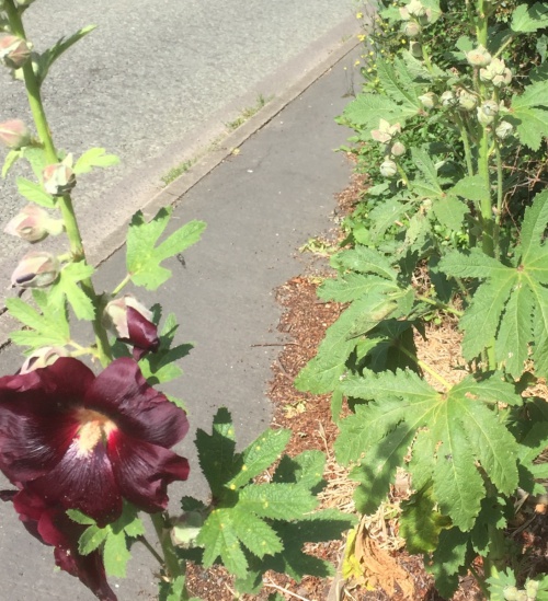 Tall, rather bristly plant up to 3 metres in height. Leaves large (to 30 cm) rounded heart-shape in outline, usually 5 to 7 lobed, coarsely toothed, long stalked. Flowers generally pink or white, large 60 to 80 mm in long, leafy, slender racemes.