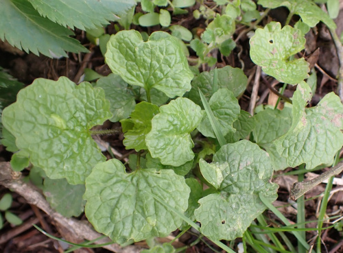 A downy mildew which parasitises Hedge Garlic, Alliaria petiolata, forming dense, well-defined white patches on the leaf undersides. This is considered to be a gall-causer.