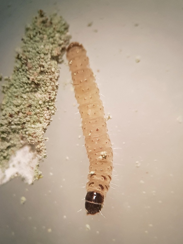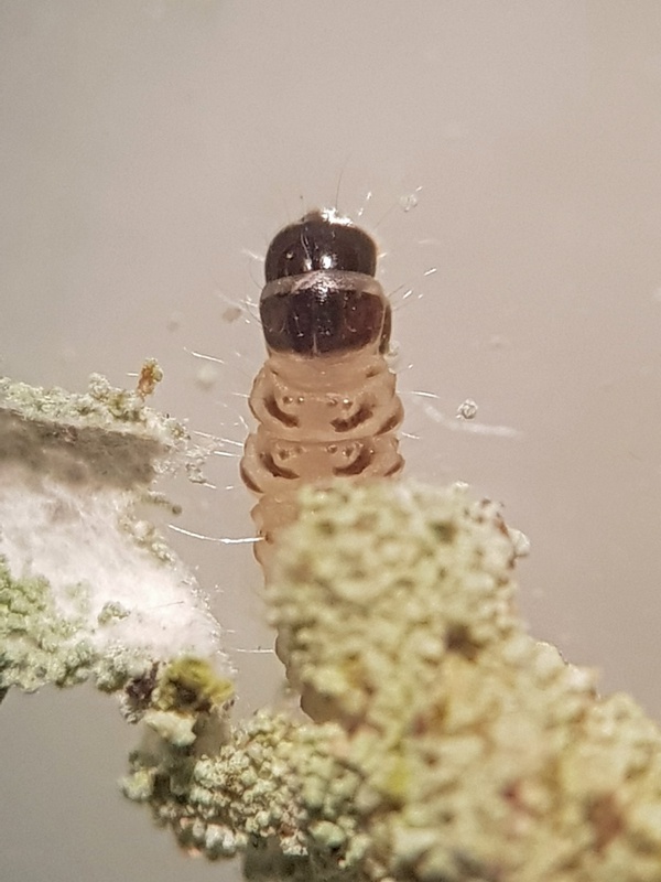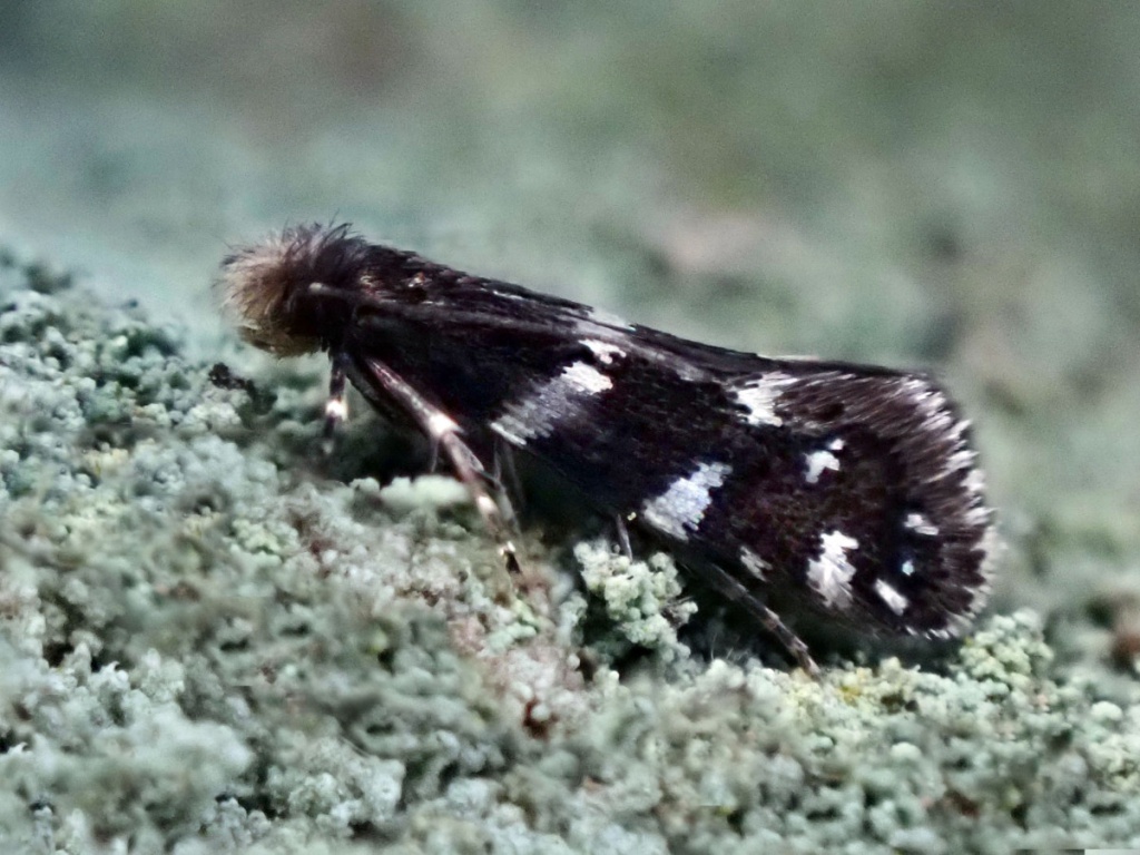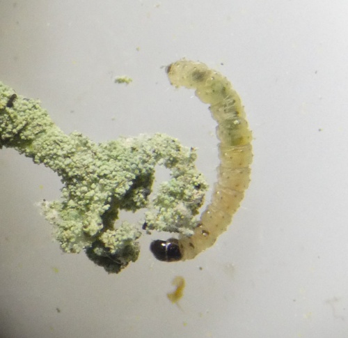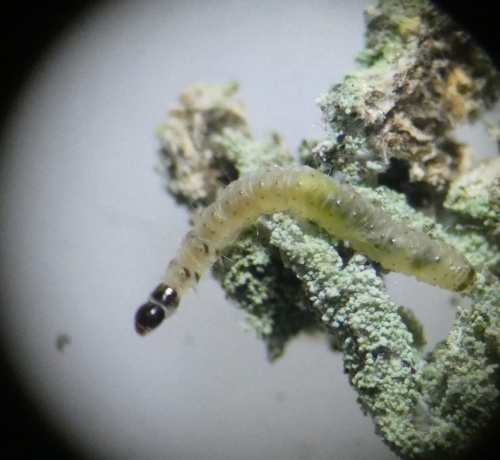 The larvae of this species feeds on various lichens (Lepraria spp. and perhaps others) on shady rocks, walls or tree trunks, constructing long lichen covered silken tubes. Tubes containing larva may be seen on the surface of the lichen from March to June. Pupation occurs within the tube.