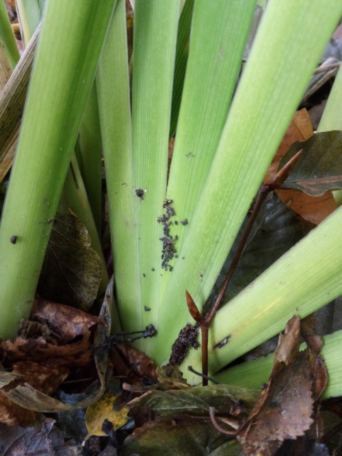 The Iris aphid feeds in large ant-attended colonies on Iris, often the Yellow Iris (Iris pseudacorus).