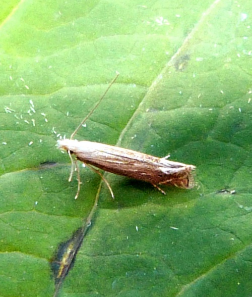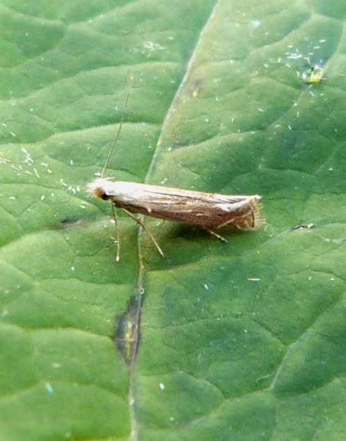 Wingspan about 12 mm. Sometimes known as the White-border Neb. The patterning at the end of the wing and the dark dot are useful factors in determining the identification.