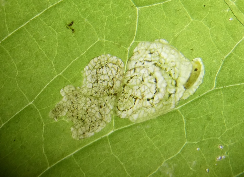 Leafmine: Please provide a backlit photograph of the leafmine showing frass pattern and also state the host plant.
