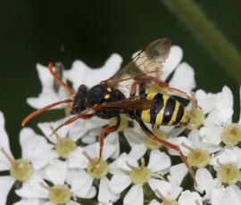 Nomada marshamella has two broods and preys on a variety of Andrena bees including Andrena scotica.