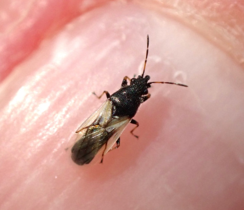 Length 3.5-4mm. Dark and densely punctured pronotum and scutellum and contrasting pale forewings.