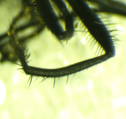 - Male middle and hind tibiae conspicuously bent at the mid-point