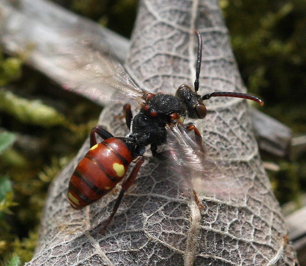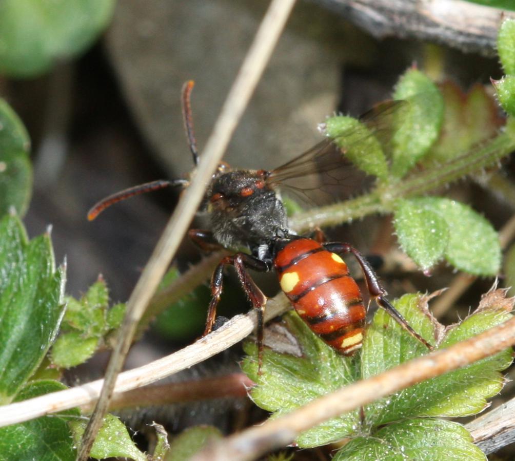 As with all Nomada bees, it is parasitic on solitary bees, usualy Andrena species. The host species of N. ferruginata is Andrena praecox. A.praecox is a rather uncommon mining bee and normally found in areas containing sufficient Willows as females are very dependent on Willow catkins for pollen in March and April.