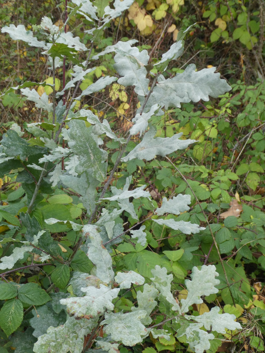 Erysiphe hypophylla and Phyllactinia roboris may occur on oaks, but are on underside of leaf only (hypophyllous) - ref. Woods et al, 2024