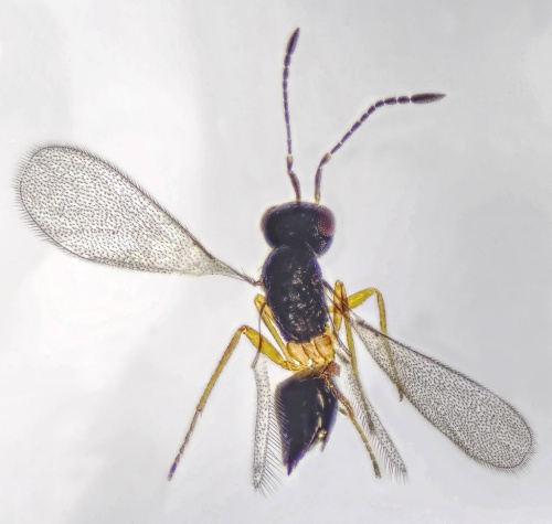 Ooctonus vulgatus is a tiny (1.5-2mm) parasitoid wasp, one of the large family of Fairy Wasps (Mymaridae) characterized by the following unique combination of features: