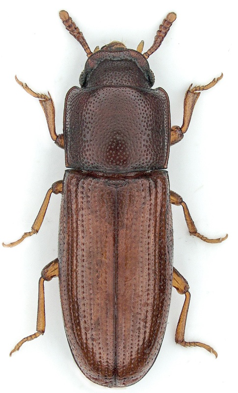 A small reddish brown beetle only 2.5 to 3.0 mm in length.