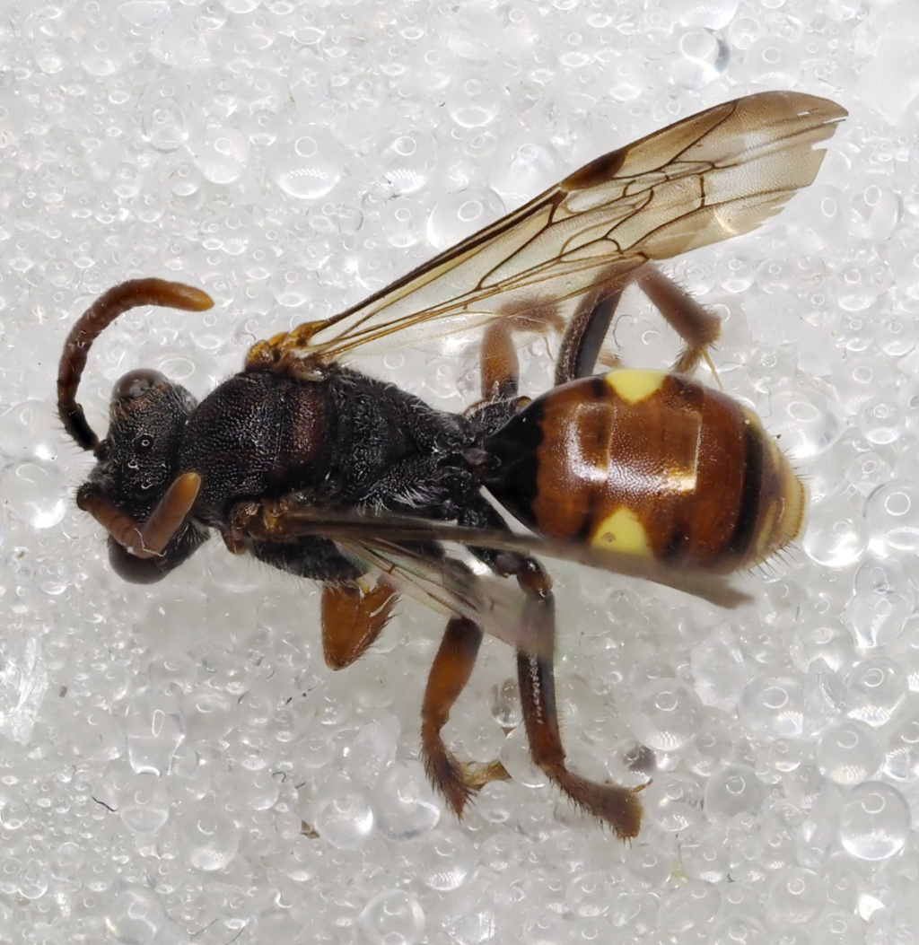 A cleptoparasite of some of the larger spring-flying Andrena bees.