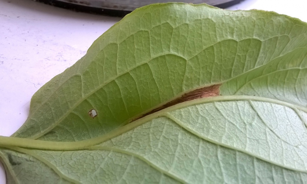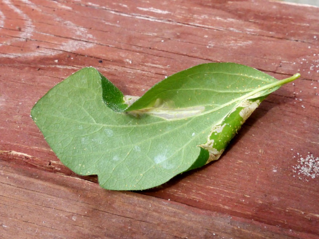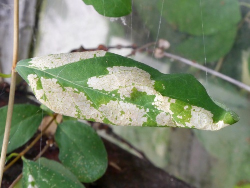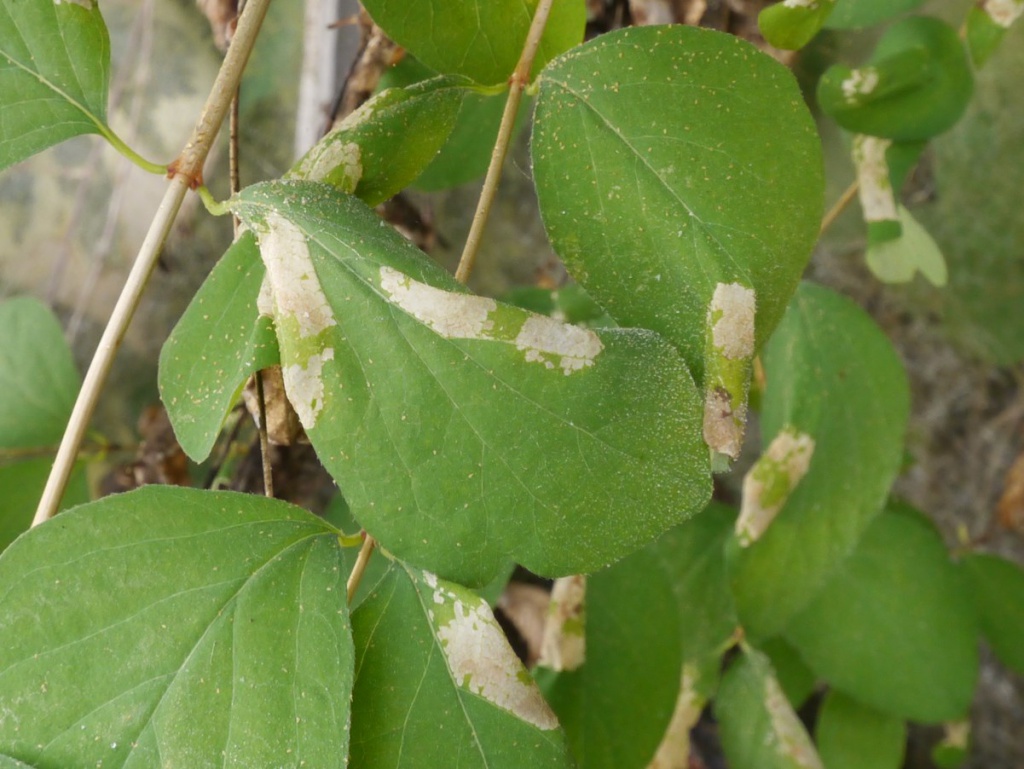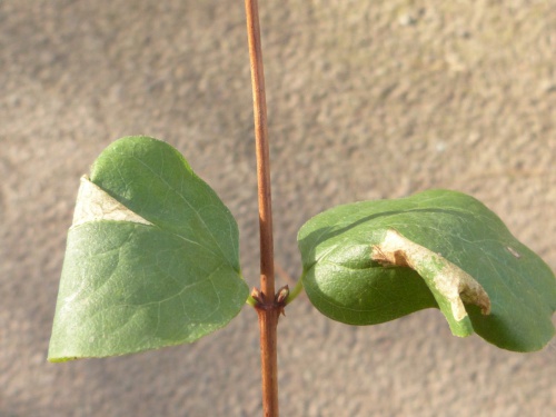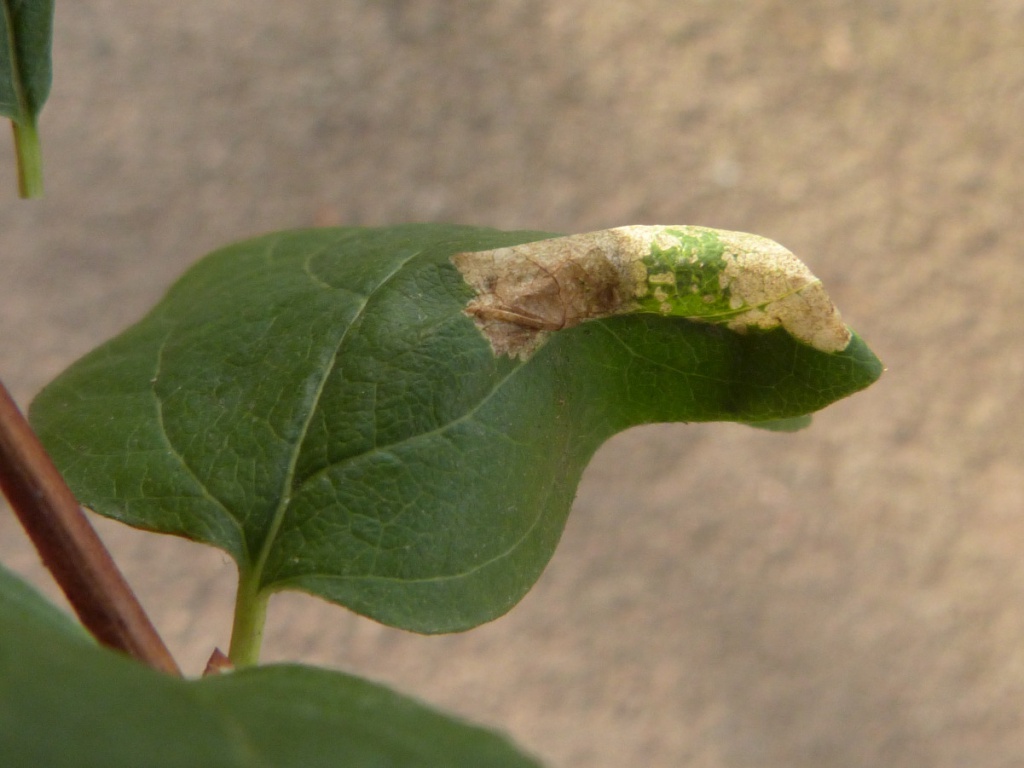 The larval foodplants are Honeysuckle, Snowberry and occasionally Leycesteria formosa. The underside mines formed are large and cause the leaf to become creased. Mines are found in July and again in September and October.