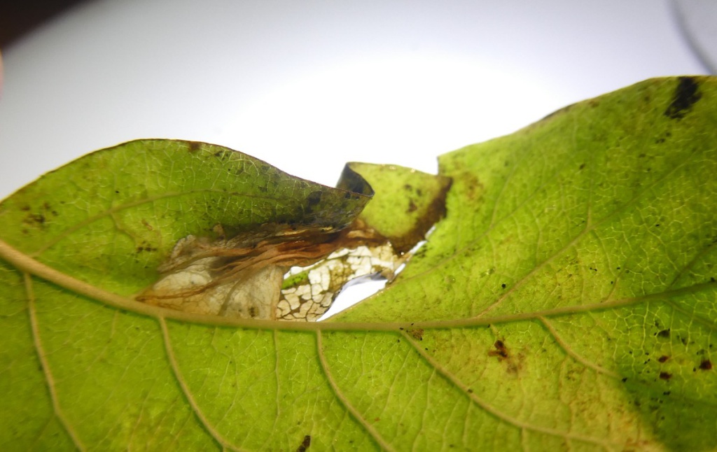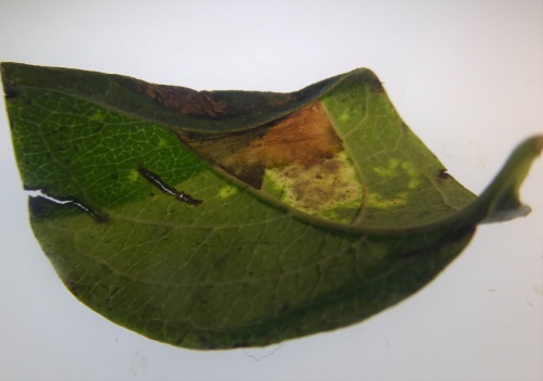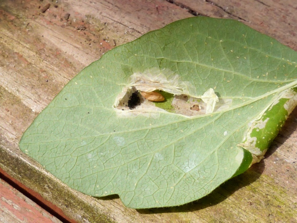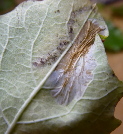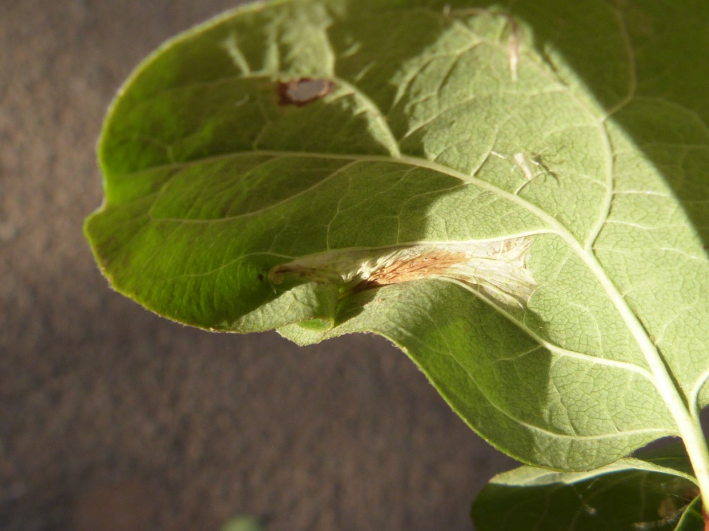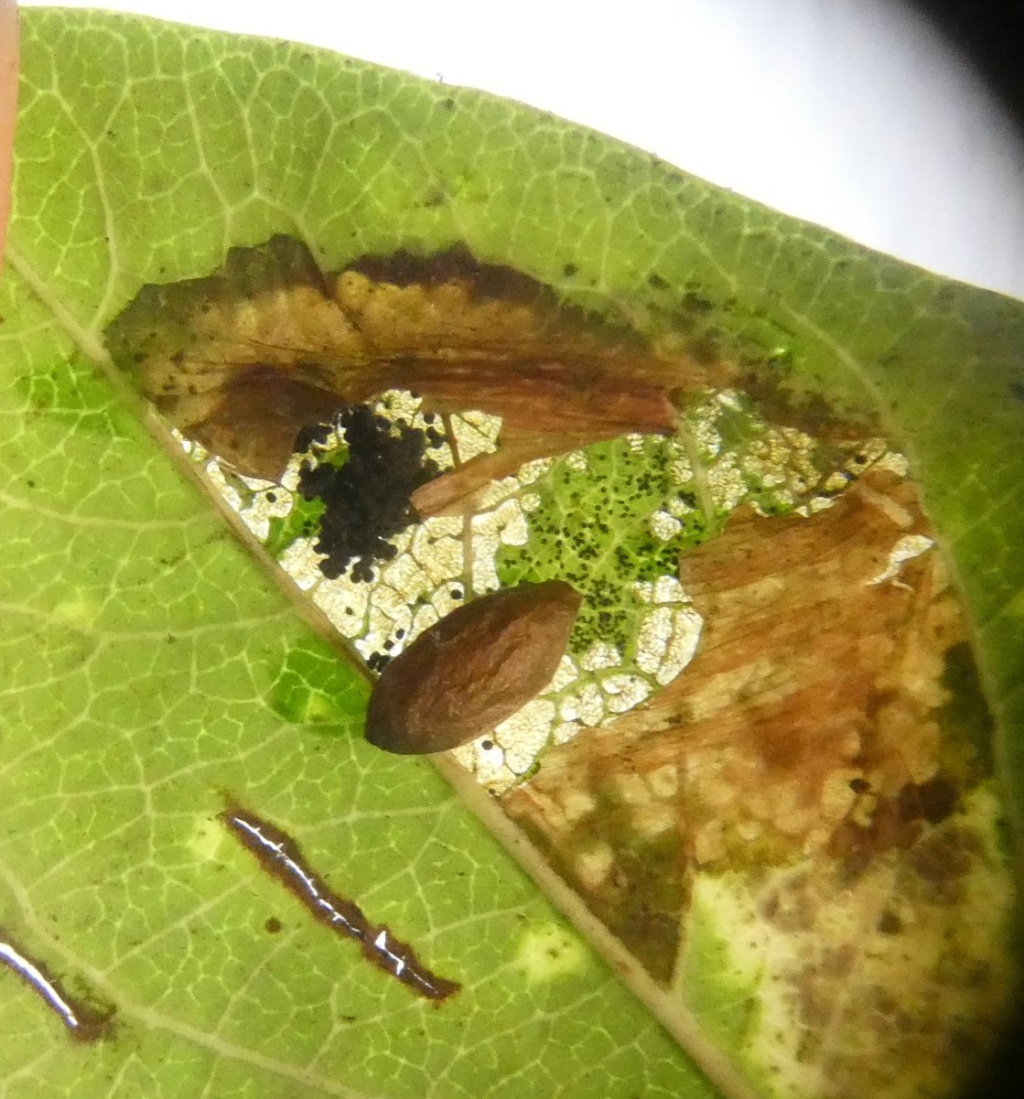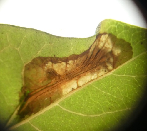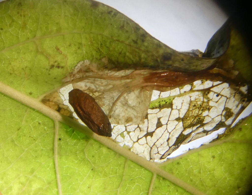 Phyllonorycter trifasciella mines can be very similar but have different cocoon and pupa