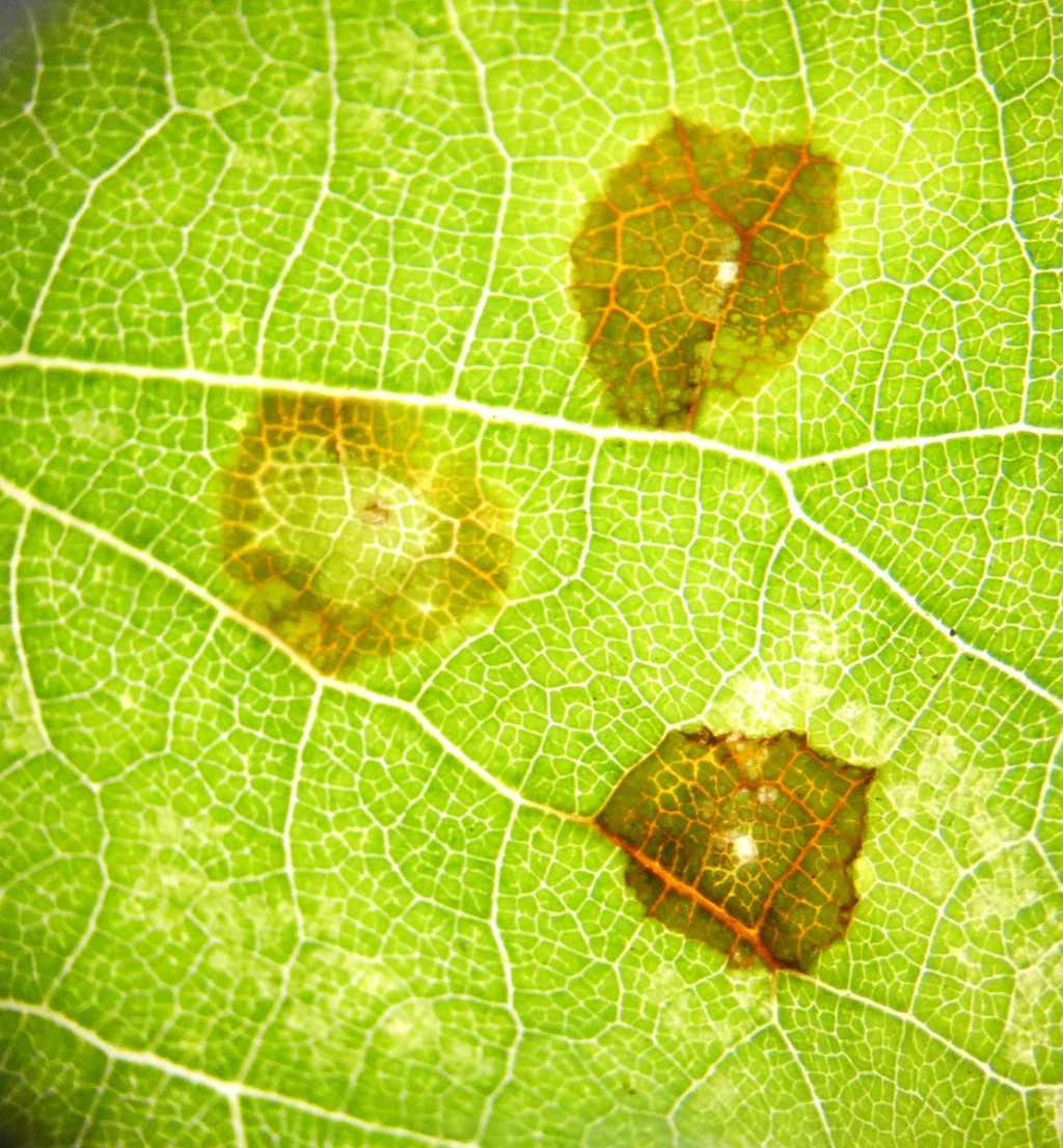 The larva of the midge Physemocecis hartigi produces a gall on the leaves of Lime, most commonly on Small-leaved Lime. The galls are small, flat and lens shaped, generally several on a leaf, each with one white larva that leaves the gall by an opening at the underside.