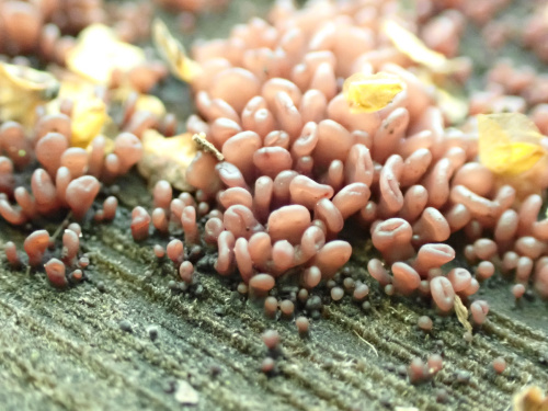 Ascocoryne cylichnium cannot reliably be separated from the sexual state of A sarcoides; microscopic examination of spores is needed