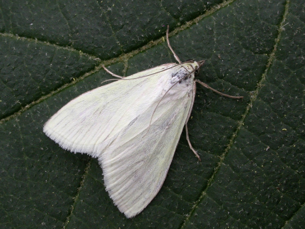 Wingspan 26 to 32 mm. With its silky whitish upperwings and diffuse dusky spot, it is quite distinctive moth, and a favourite amongst enthusiasts.