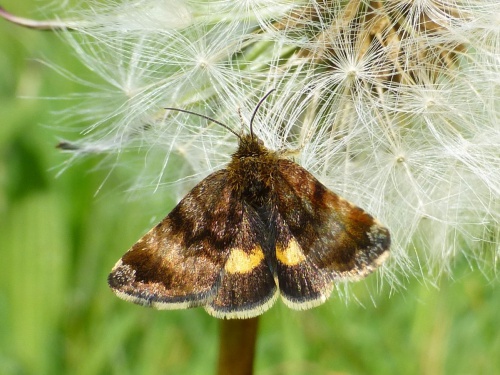 A day-flying species which prefers sunny weather. On the wing in May and June, it visits various flowers in grassy meadows.