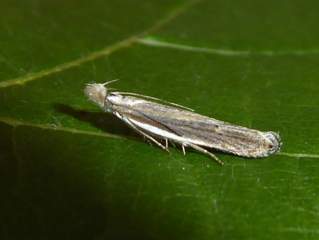 Wingspan about 18 mm. A rather attractive and distinctive-looking Gelechiid, having a strong white costal streak, tufted labial palps and noticeably banded cilia in fresh specimens.