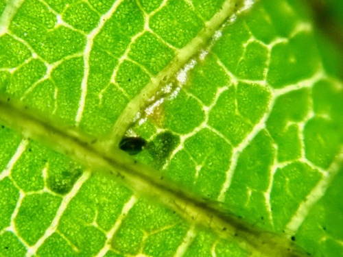 Care is needed when trying to separate from those of Stigmella microtheriella. The most reliable method of identification for this species is the egg position, S.floslactella lays an egg always on underside in a vein axil whereas S.microtheriella lays it often on or near a vein, but not in the axil.