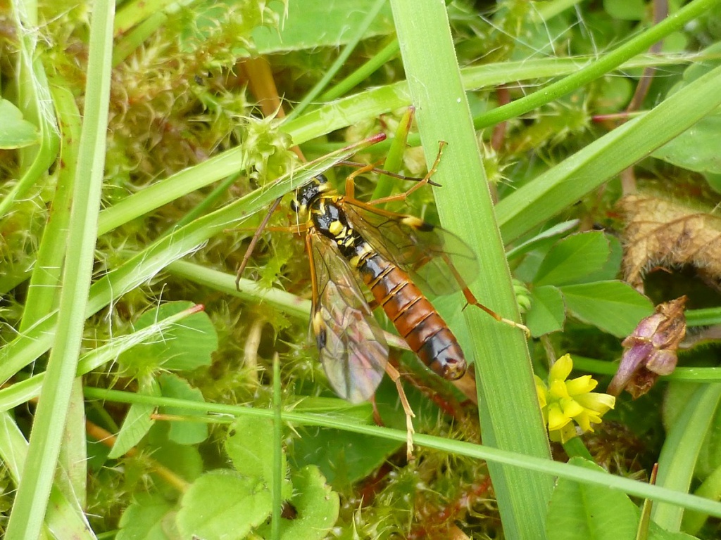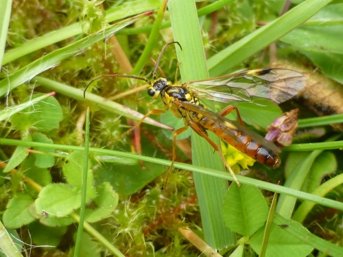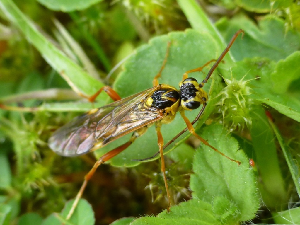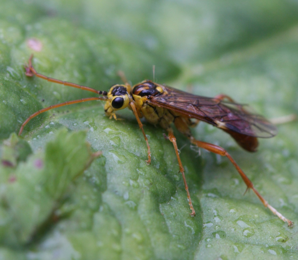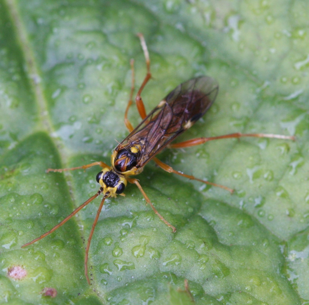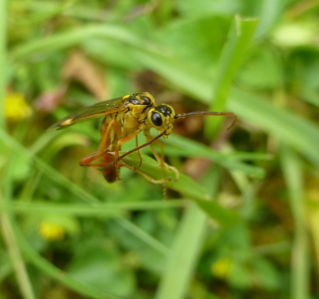 This species has orangey brown abdomen, legs and antennae, whilst the head is yellow and black.