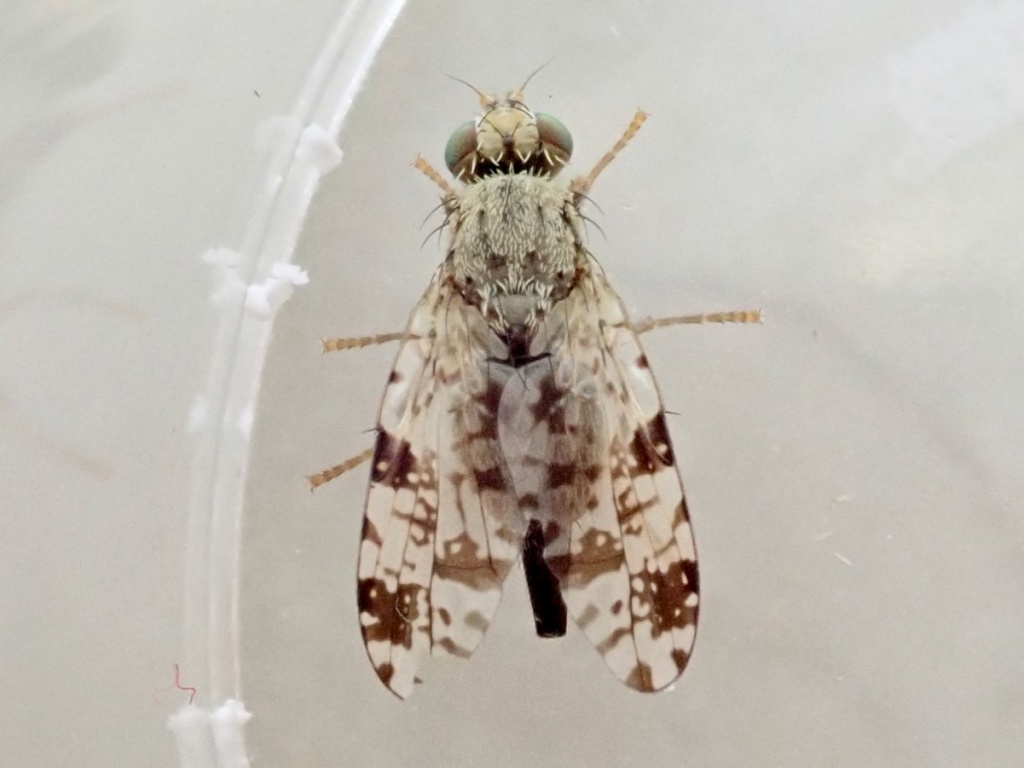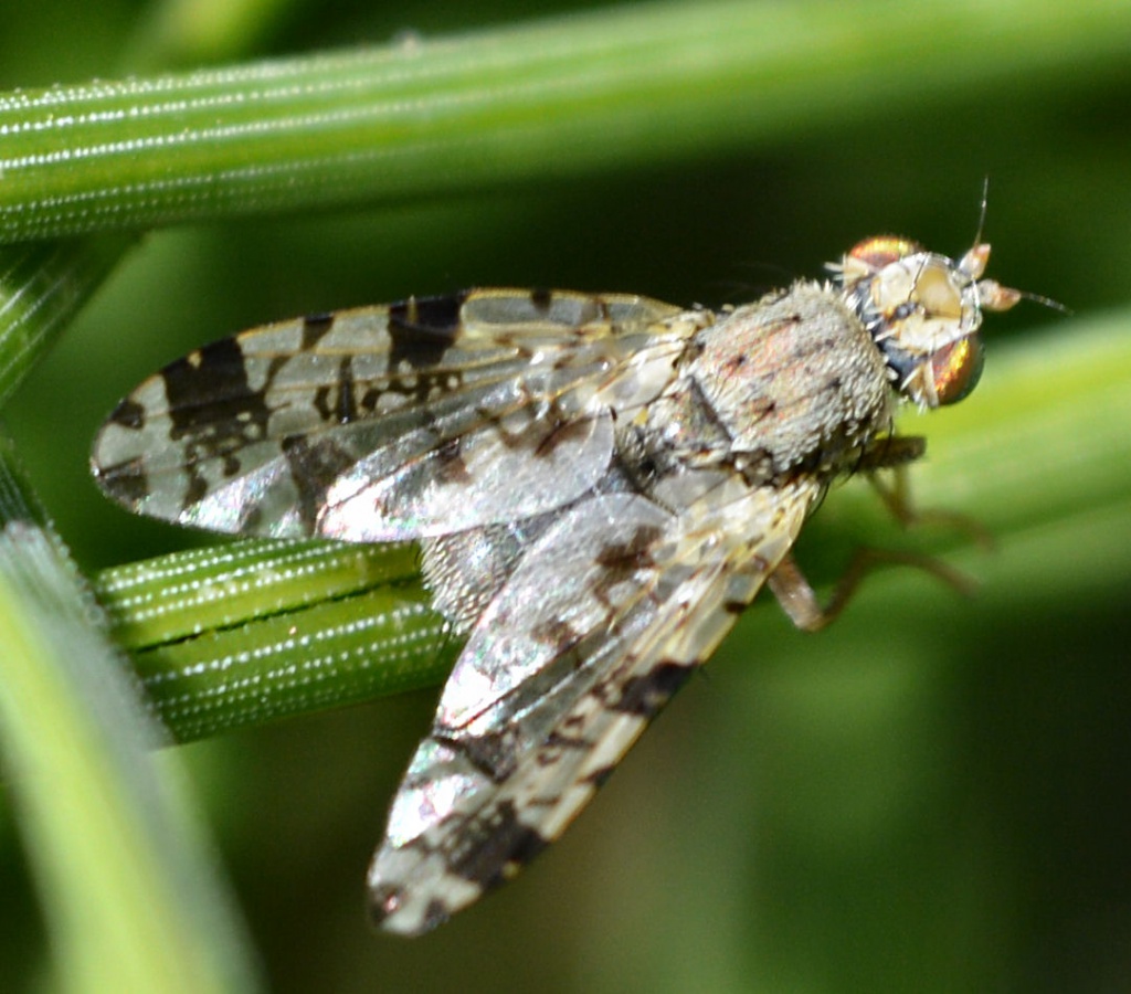 Its wings are boldly patterned with dark markings similar to many other species in this genus.