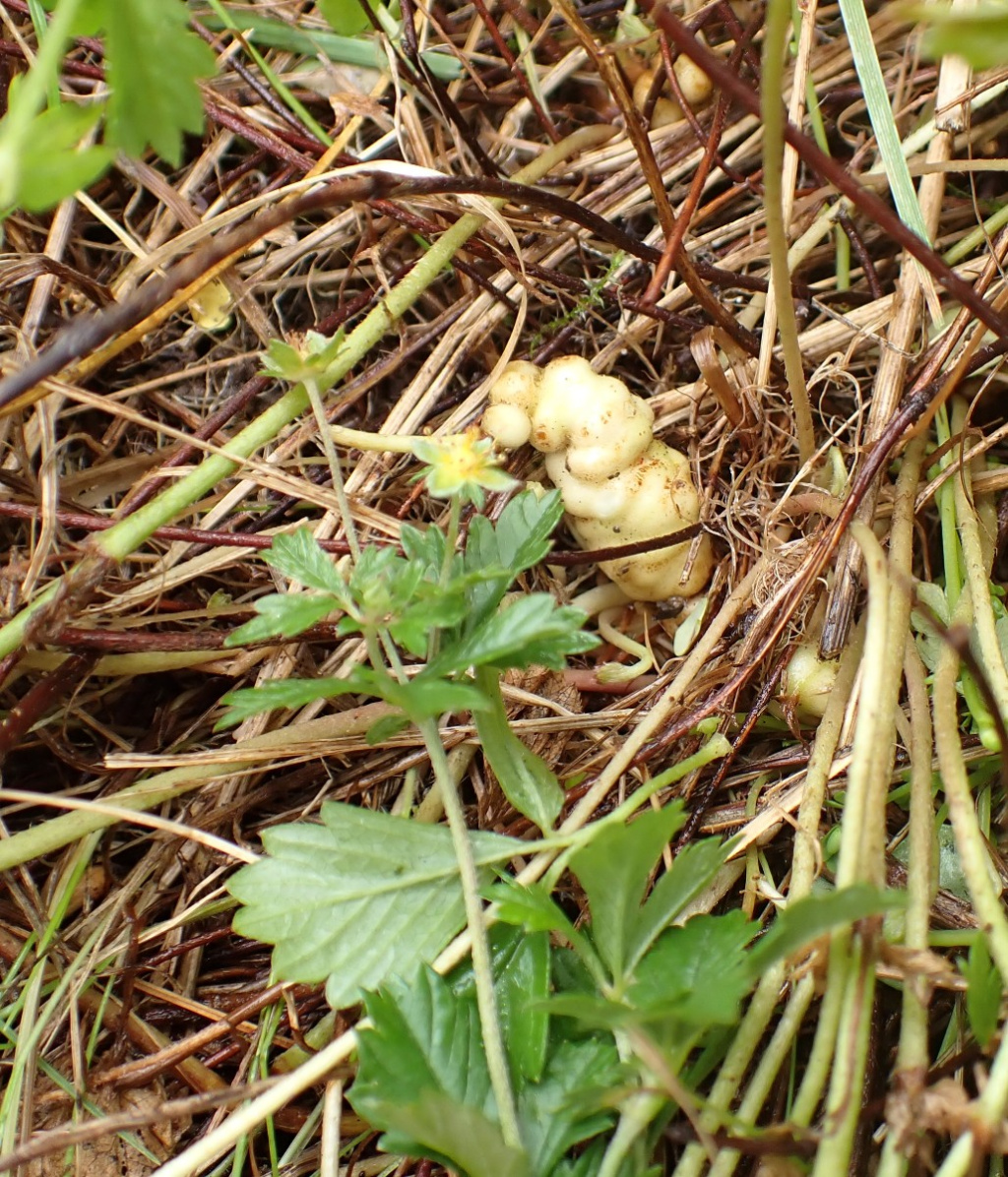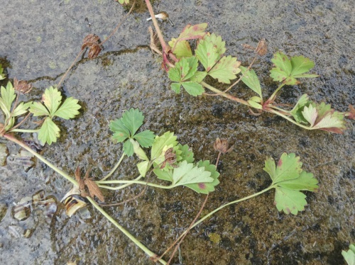 Some flowers with 4 petals like Tormentil, but leaves with 4-5 leaflets and longer petioles, which diminish in length towards the stem apex. Very similar to the sterile hybrid, but Trailing Cinquefoil is fertile, so the old flowerheads have achenes containing seeds.