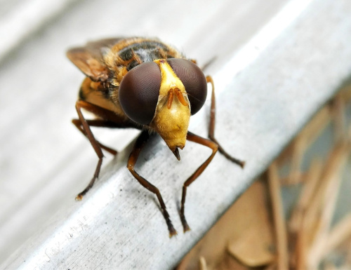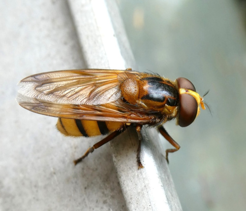 Somewhat smaller than the similiar V. zonaria and with yellow rather than chestnut markings on tergite (segment) 2 and more extensive yellow on the underside of the abdomen. It looks more wasp-like than hornet-like.