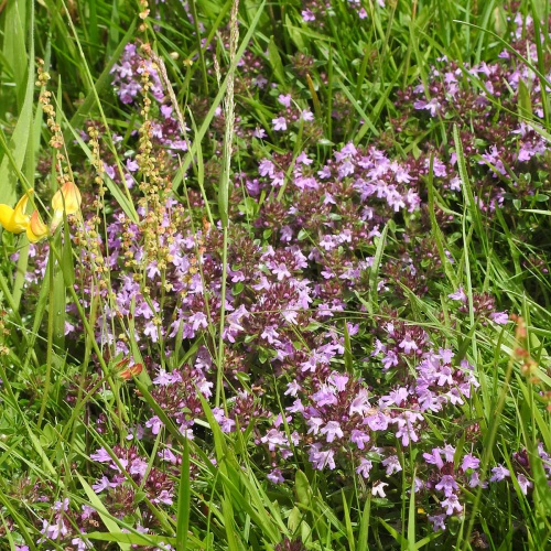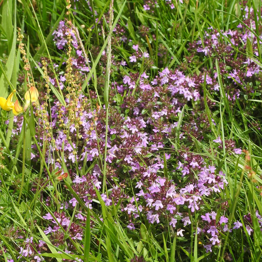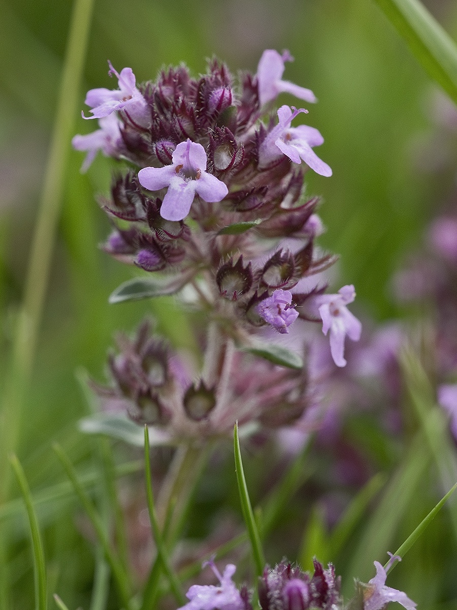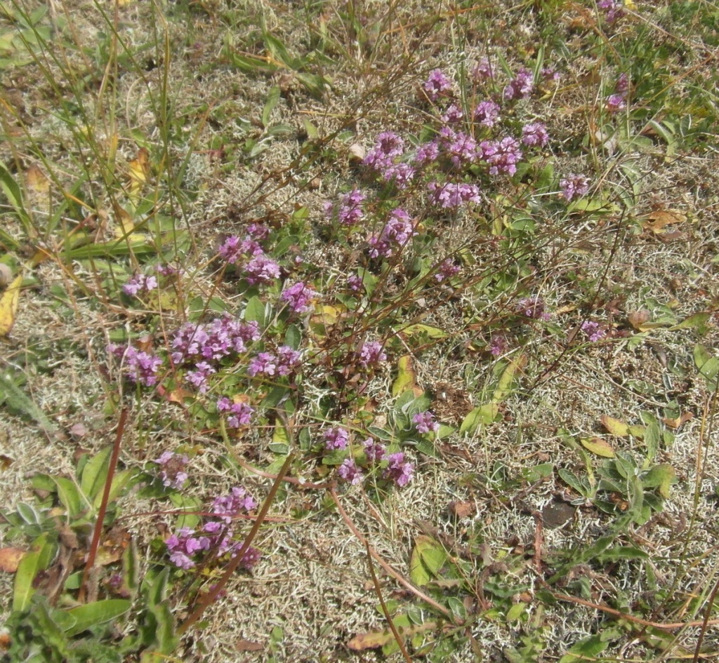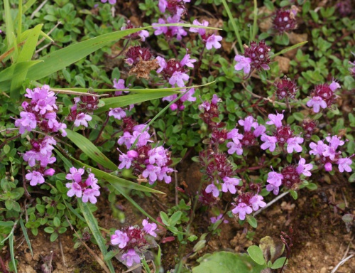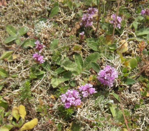 Low growing plant that forms dense, slightly aromatic mats. Small pink-purple flowers on erect stems and with oval, untoothed leaves.