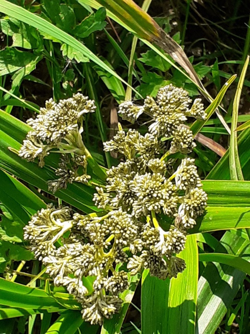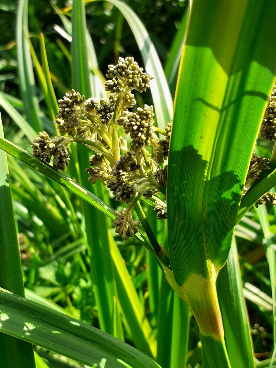 This can be a tall plant of 1 metre in height with triangular stems. The inflorescence has a spreading habit. It is patch forming with creeping rhizomes.