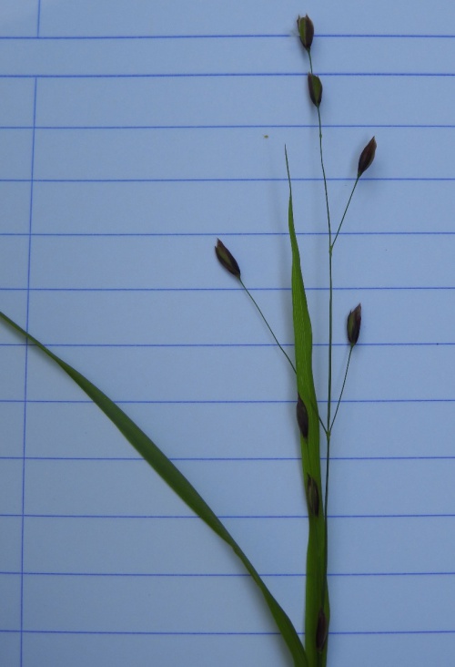 30 to 70 cm tall. Panicle 10 to 20 cm, spreading, very loose. Little branched, erect or nodding.