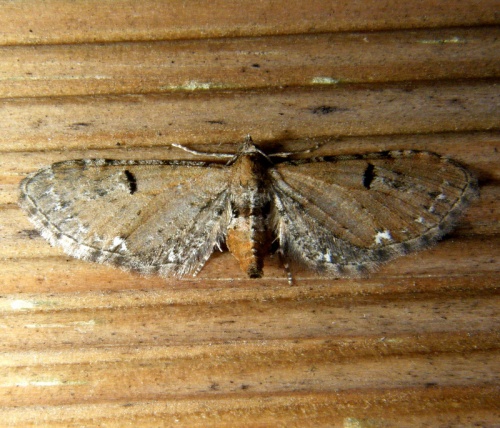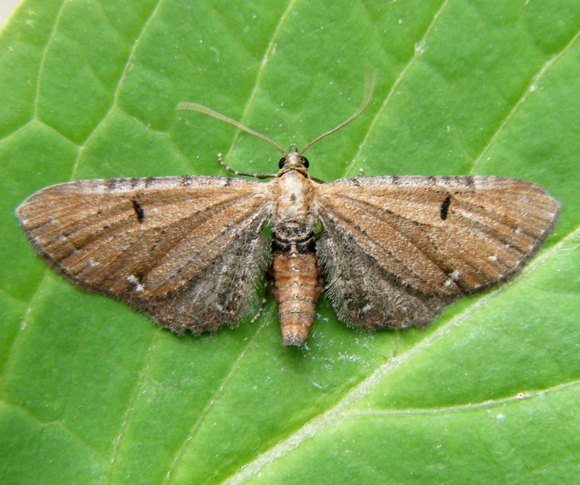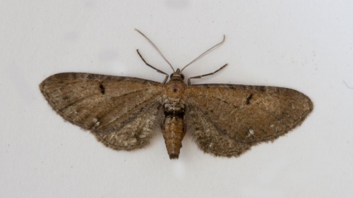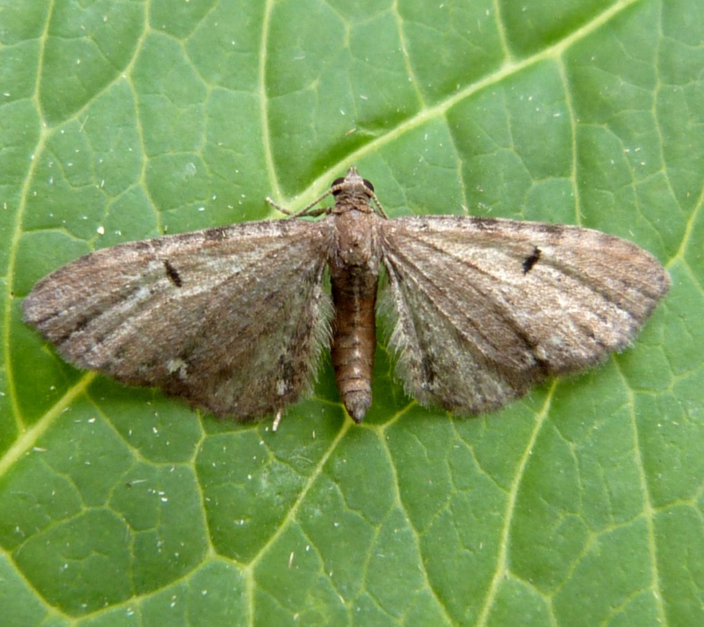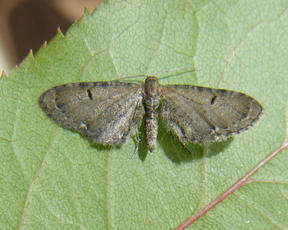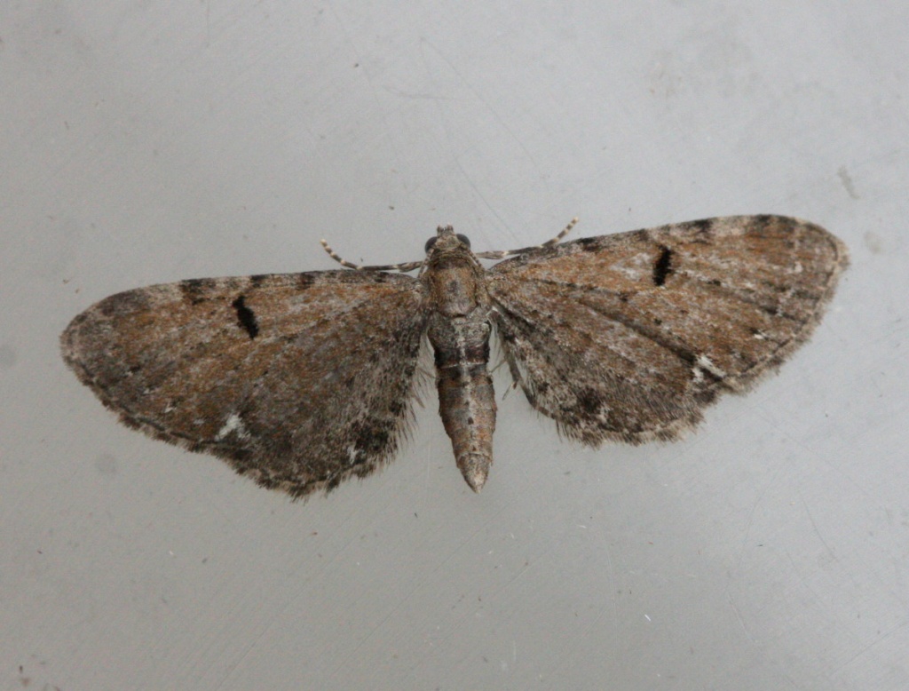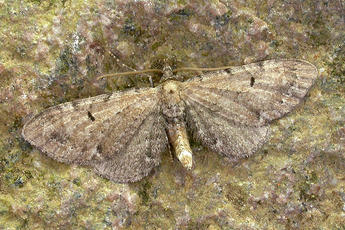 Wingspan 21-23 mm. The Ling Pug (f. goossensiata) was originally thought to be a separate species, but is now considered a heathland race of absinthiata.  Size can help to distinguish it from Currant Pug which is slightly smaller with a wingspan of  17-22 mm.
